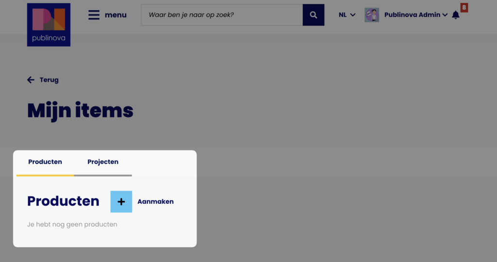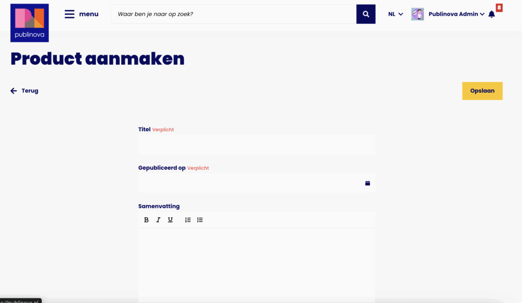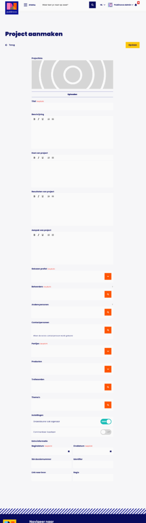 - Projecten: valt jouw product onder een project, vul het project van Publinova hier in.